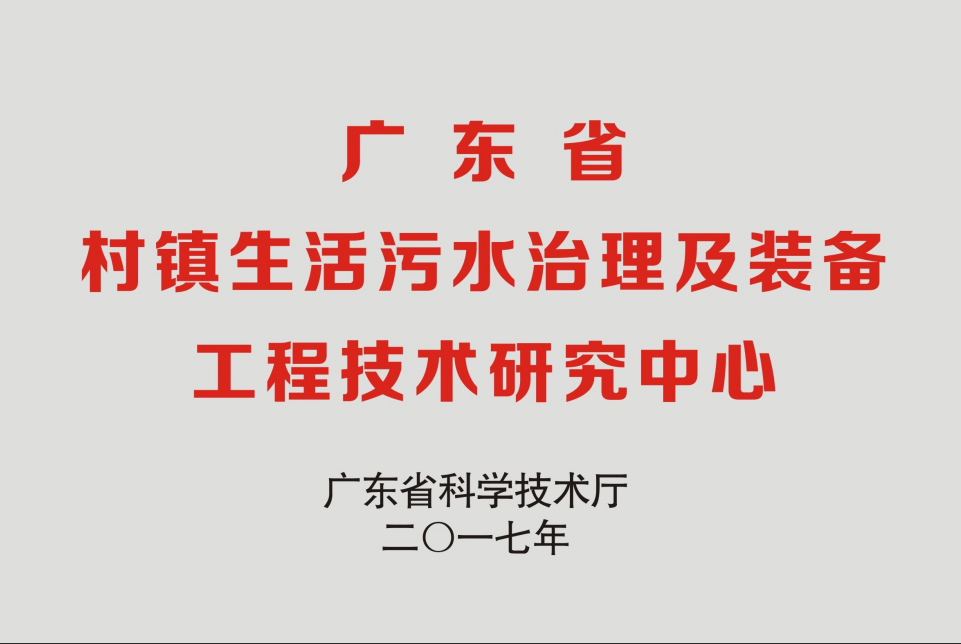 2017年9月,经广东省科技厅认定为广东省村镇生活污水治理及装备工程技术研究中心。